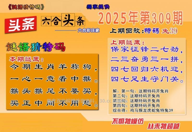 309期:天地两肖【地肖+马兔】开鼠06准 |